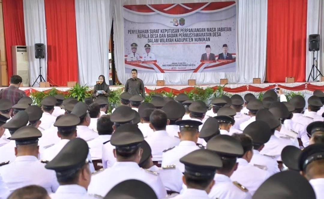 TERASNKRI.COM | NUNUKAN, KALTARA – Bupati Nunukan Hj. Asmin Laura Hafid mengukuhkan dan menyerahkan SK Perpanjangan Masa Jabatan Kepala Desa Dan Badan Permusyawaratan Desa (BPD) Se Kabupaten Nunukan sebanyak 283 orang yang terdiri dari 140 Kepala Desa dan 143 BPD, Kamis (20/6/2024).