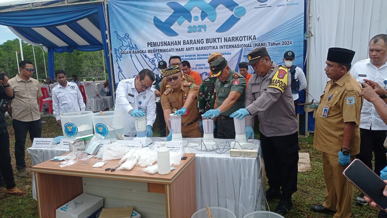 Pada kegiatan Deklarasi ini juga BNN Provinsi Kalimantan Utara juga akan melangsungkan pemusnahan barang bukti narkotika jenis Sabu, hasil pengungkapan jajaran BNNP Kalimantan Utara pada Semester I Tahun 2024. Adapun total barang bukti yang akan dimusnahkan sebanyak 4.123,94 Gram /4,12 Kilogram Sabu. Pemusnahan barang bukti ini merupakan hasil dari pengungkapan 2 kasus tindak pidana narkotika yang melibatkan 10 tersangka di Wilayah Kalimantan Utara, (Sahar)