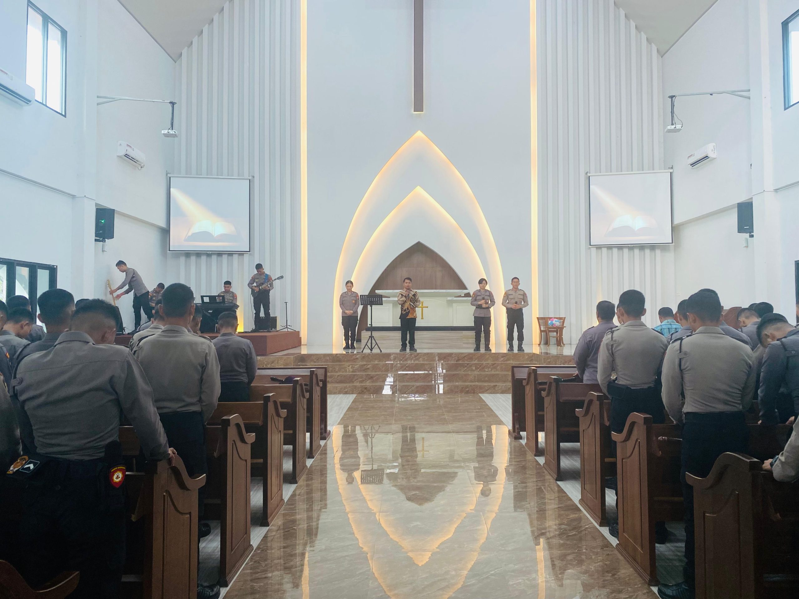TERASNKRI.COM | BULUNGAN, KALTARA – Personel Polda Kalimantan Utara menjalankan kegiatan pembinaan rohani dan mental (Binrohtal) secara rutin setiap Kamis, bertujuan membentuk karakter yang lebih humanis bagi anggota Polri, Kegiatan Binrohtal di Masjid Nur Aryaguna Mapolda Kaltara untuk yang beragama Islam dan yang beragama Nasrani menjalankan Ibadah di Gereja Oikumene Hosana 91 serta dihadiri oleh Pejabat Utama Polda Kaltara, Bintara, dan ASN Polda Kaltara. Kamis (04/07/2024).