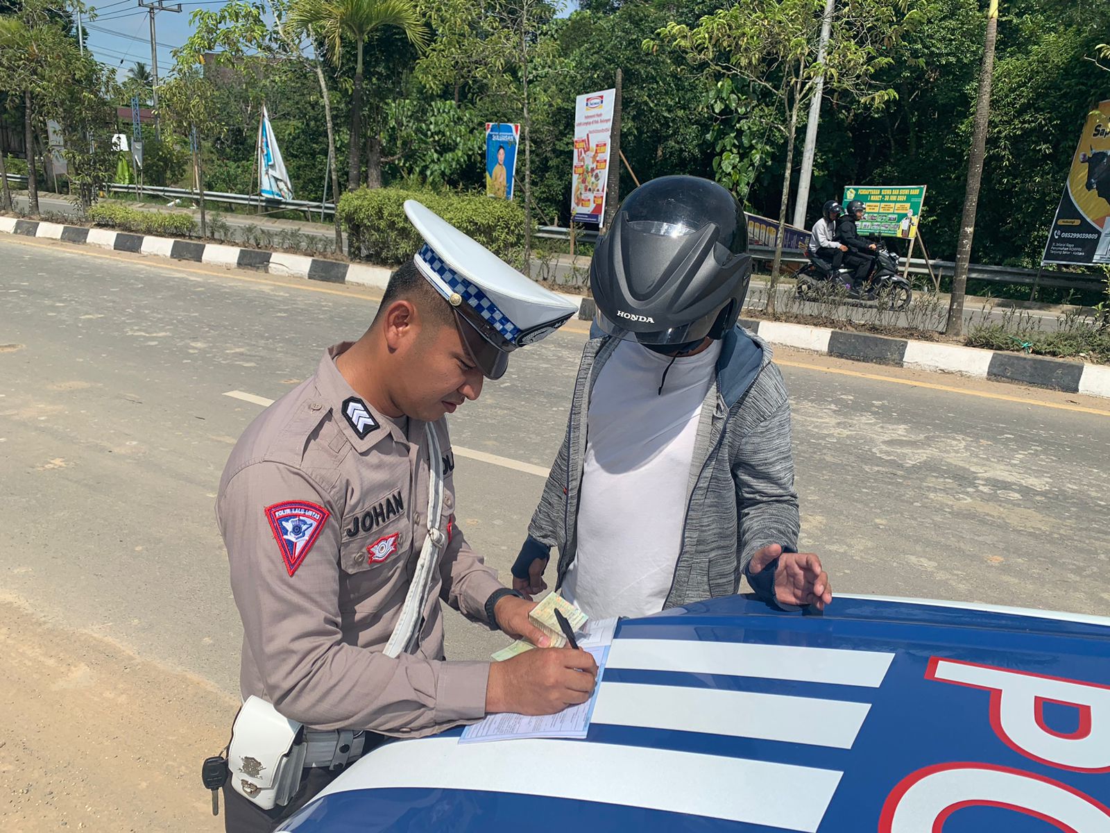 Dalam operasi tersebut, Personel Dit Lantas Polda Kaltara memberikan sanksi berupa tilang kepada pengendara yang melanggar lalu lintas.