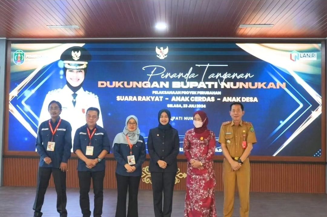 TERASNKRI.COM | NUNUKAN, KALTARA – Bupati Nunukan Hj. Asmin Laura Hafid melaunching Inovasi Proyek Perubahan Peserta Diklat Pelatihan Kepemimpinan Nasional Tingkat II Angkatan V Puslatbang KMP LAN Makassar Tahun 2024, Selasa (23/7/2024).