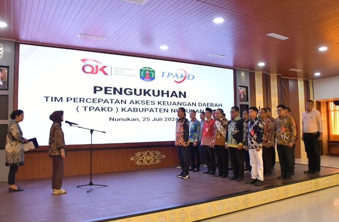 TERASNKRI.COM | NUNUKAN, KALTARA – Bupati Nunukan Hj Asmin Laura Hafid secara resmi mengukuhkan Tim Percepatan Akses Keuangan Daerah (TPAKD) di Kabupaten Nunukan, yang dilaksanakan di ruang pertemuan Lantai V Kantor Bupati Nunukan, Kamis 25 Juli 2024.
