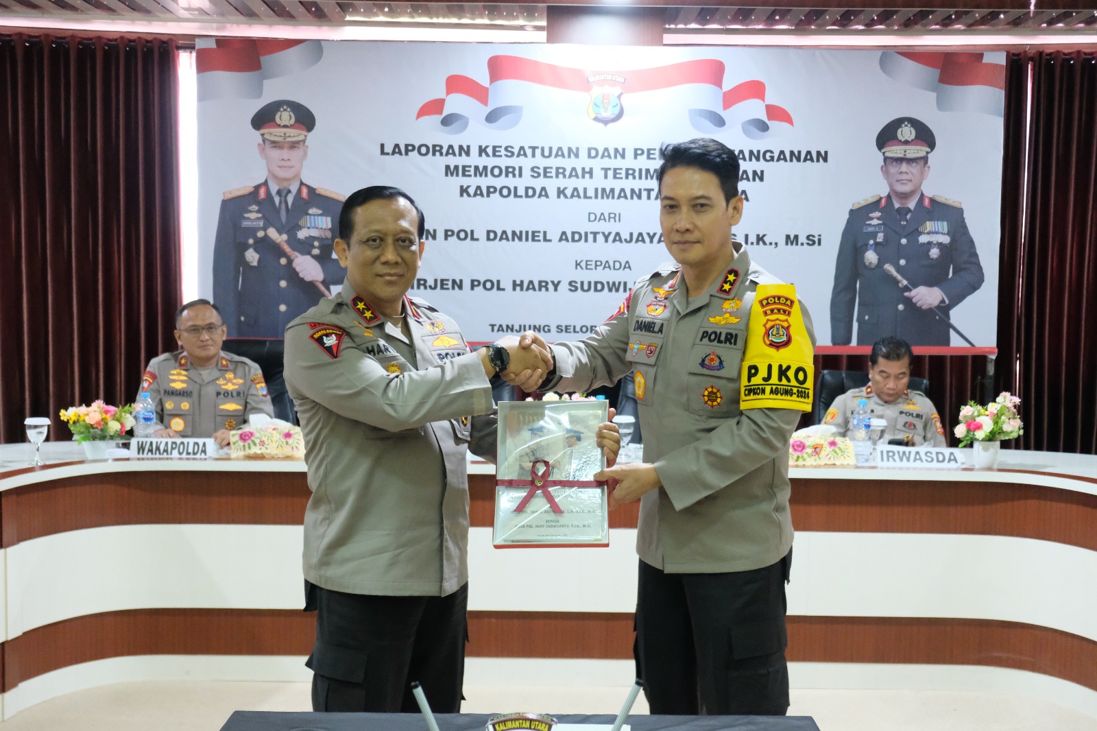 TERASNKRI.COM | BULUNGAN, KALTARA – Bertempat diruangan kerja Kapolda Kaltara telah dilaksanakan kegiatan Paparan Laporan Kesatuan ( Lapsat ) dan memori serah terima jabatan Kapolda Kaltara dari Irjen Pol. Daniel Adityajaya, S.H., S.I.K., M.Si kepada Irjen Pol. Hary Sudwijanto, S.I.K.,M.Si., Jum’at (09/08/2024)