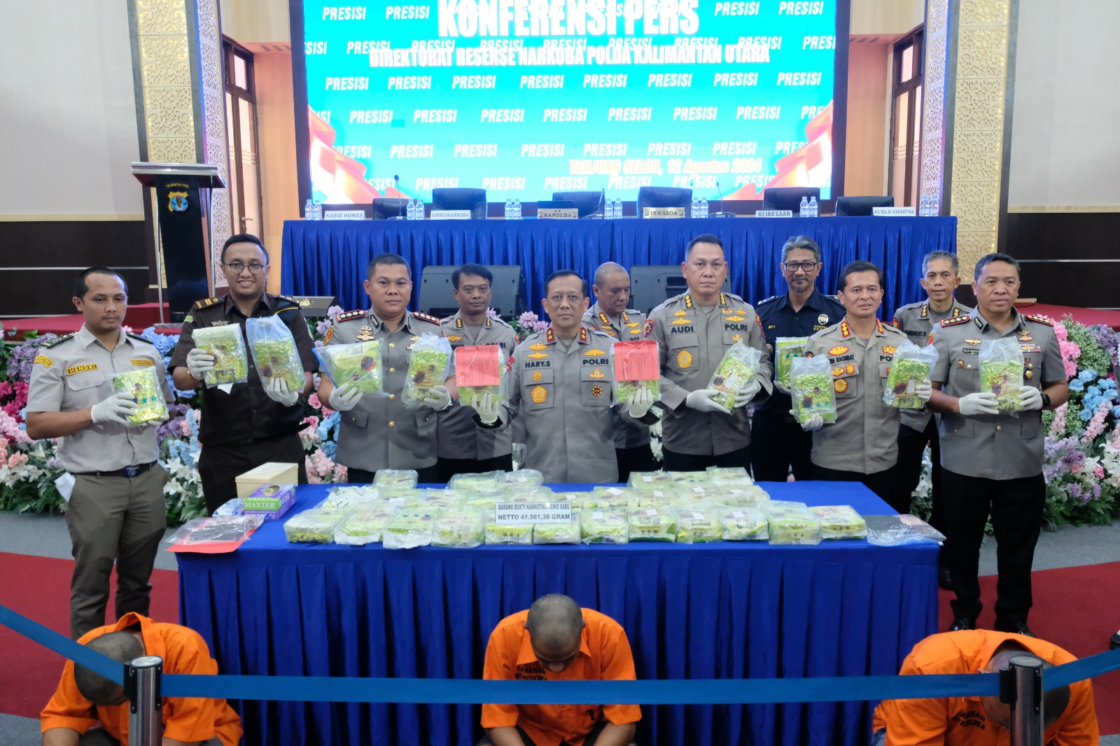 TERASNKRI.COM | BULUNGAN, KALTARA – Jajaran Polda Kaltara berhasil mengungkap Tindak Pidana Narkoba Golongan 1 jenis Sabu seberat 42 kg dari dua kasus yang hendak diedarkan ke Kaltim dan Sulsel.