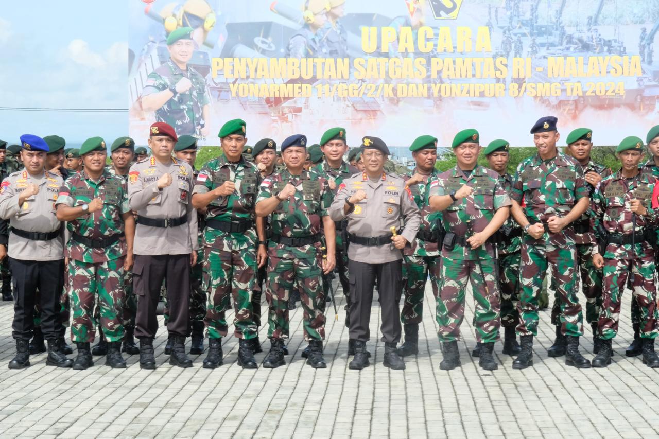 Kapolda Kaltara Hadiri Upacara Penyambutan Satgas Pamtas RI-Malaysia Yonarmed 11/GG/2/K dan Yonzipur 8/SMG T.A. 2024