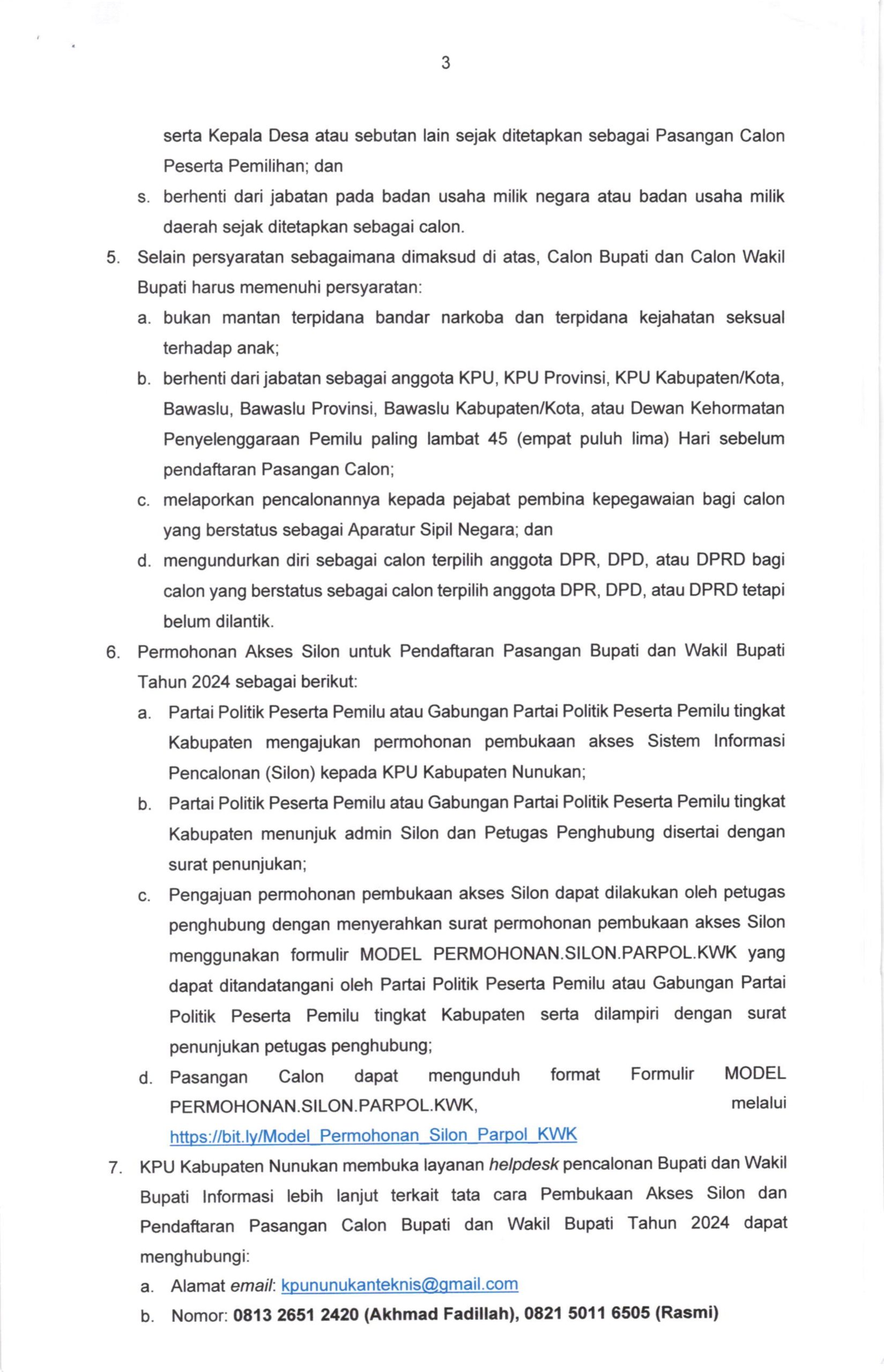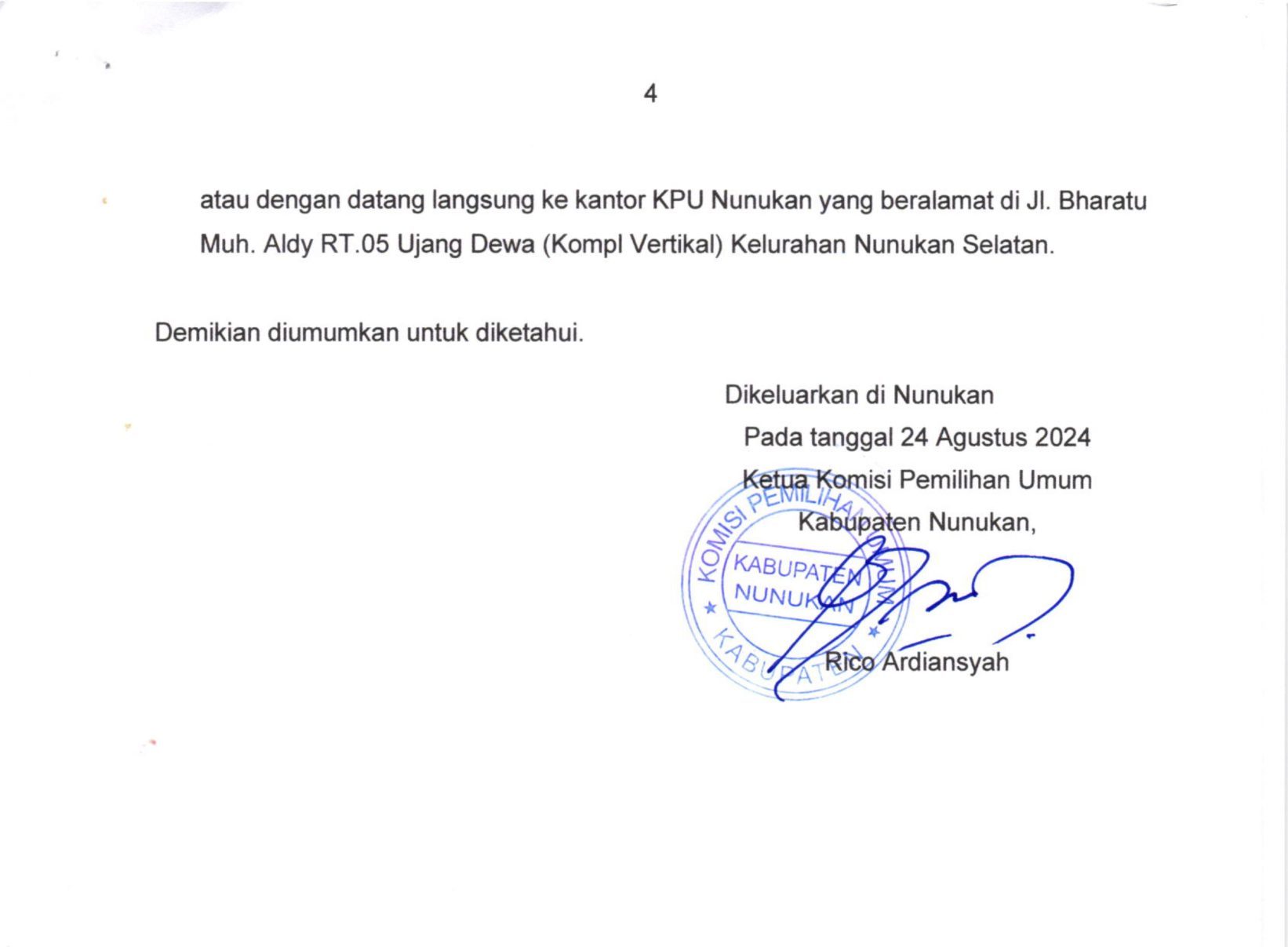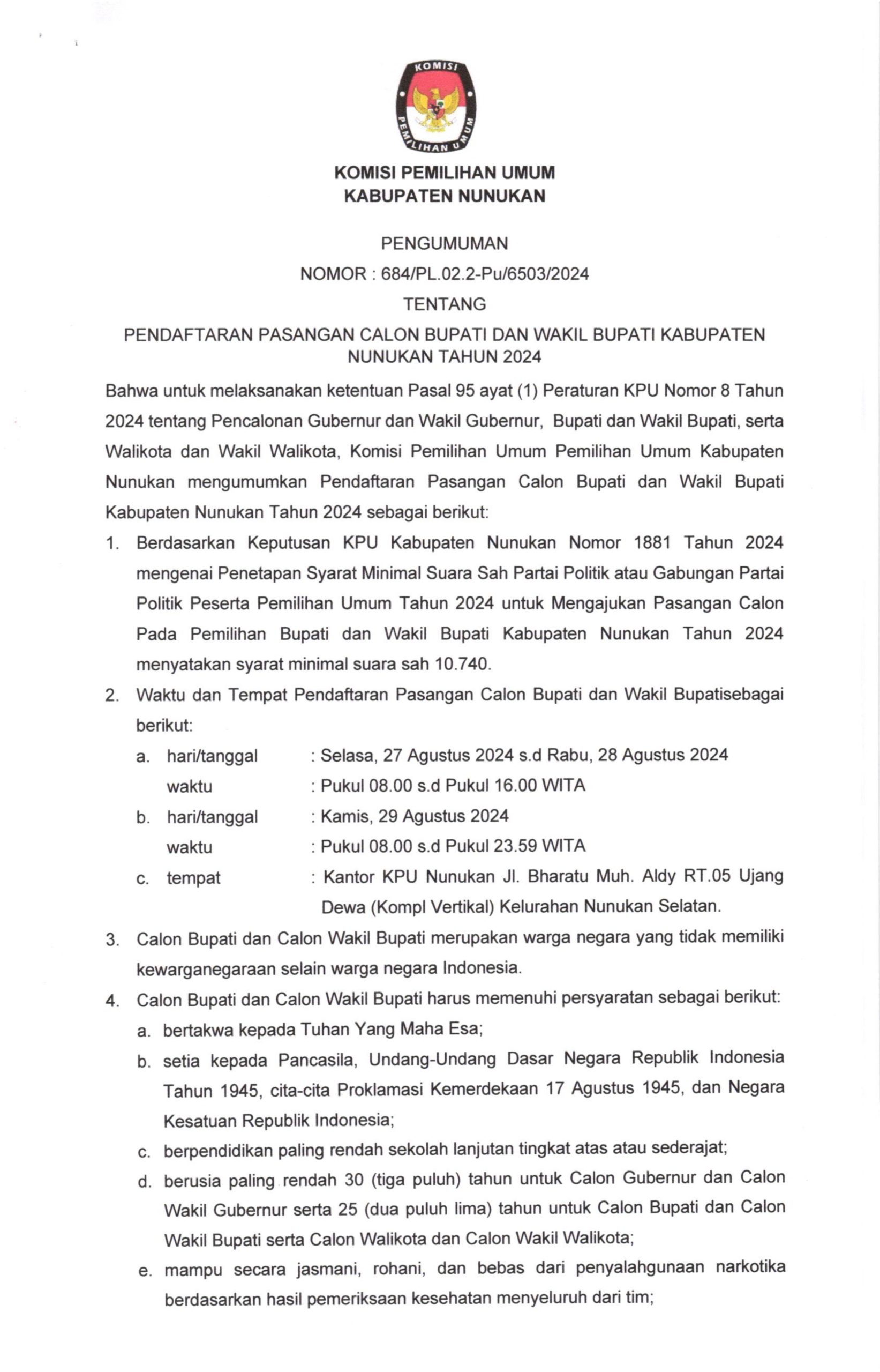 Berikut Pengumuman KPU Terkait Pendaftaran Pasangan Calon Bupati dan Wakil Bupati Nunukan 2024.
