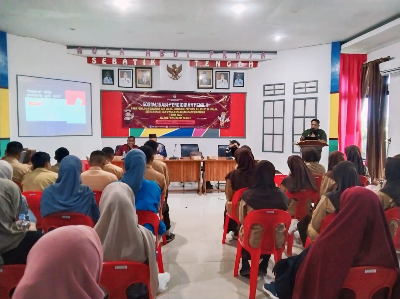 Sementara itu, Camat Sebatik Tengah, Aris Nur, S.STP dengan penuh antusiasme menyampaikan, “Partisipasi dalam Pemilukada adalah kunci dari pondasi demokrasi yang kuat. Pemuda memiliki peran yang sangat vital dalam menentukan arah masa depan negara kita. Saya sangat berharap, melalui kesempatan ini, mereka akan merasakan betapa pentingnya suara mereka dalam menentukan pemimpin yang akan mewakili kepentingan mereka.”