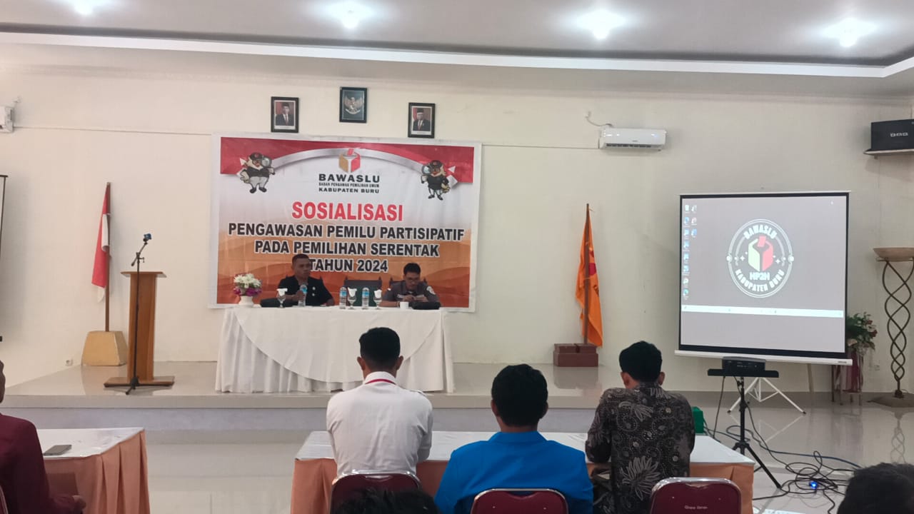 Ajakan itu disampaikan Koordinator Divisi Penanganan Pelanggaran Sengketa (PPS) Bawaslu Buru, Epsus Klion Tomhisa saat membuka kegiatan sosialisasi pengawasan Pemilu partisipatif pada pemilihan serentak Tahun 2024, yang berlangsung di salah satu hotel du Namlea, Kabupaten Buru, Maluku, Sabtu (5/10/2024).