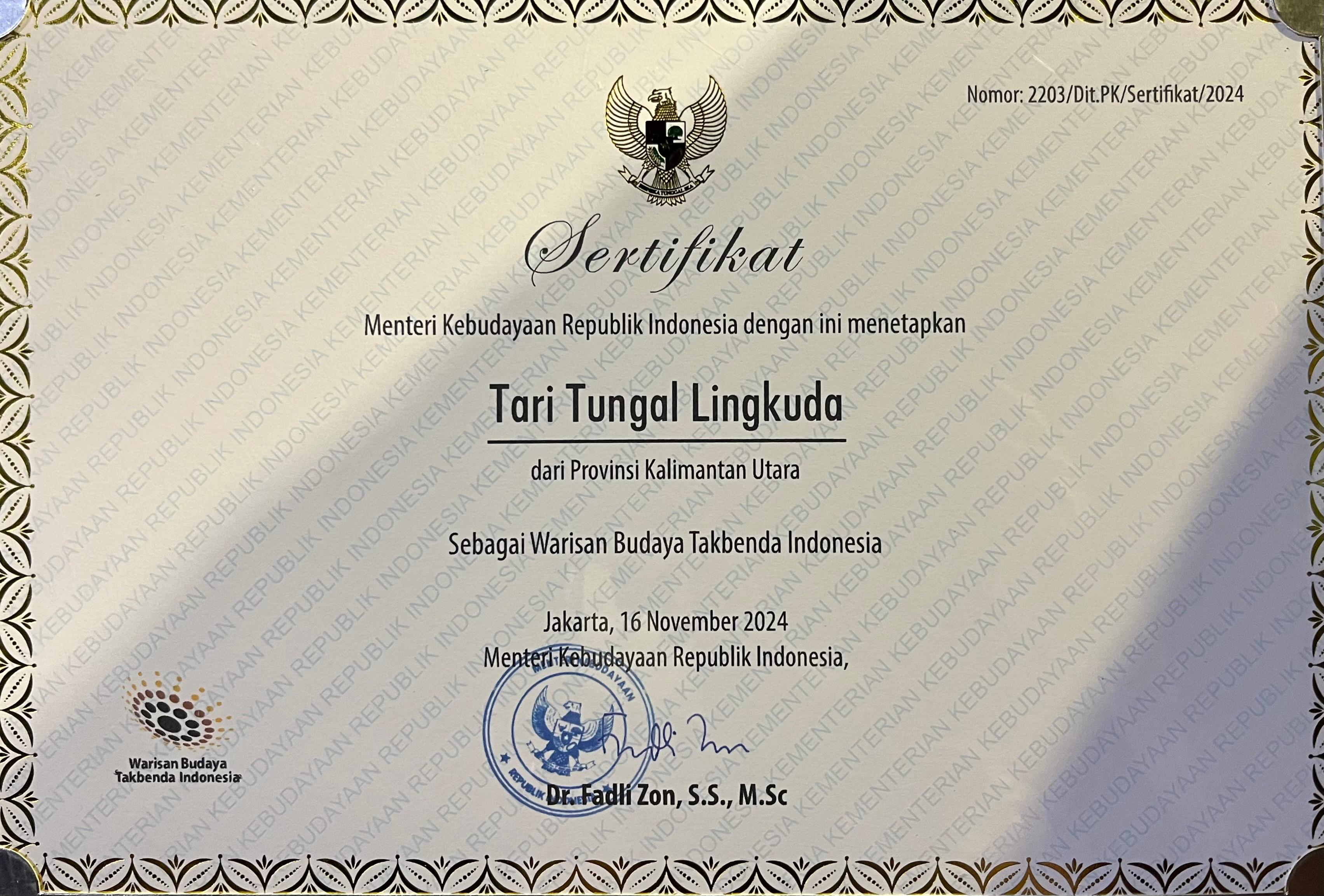 Sebagai warisan budaya takbenda, Tari Tungal Lingkuda kini resmi tercatat dalam daftar warisan budaya Indonesia dan diharapkan dapat lebih dikenal di kancah internasional. (TN-Adv/DKISP Kaltara)