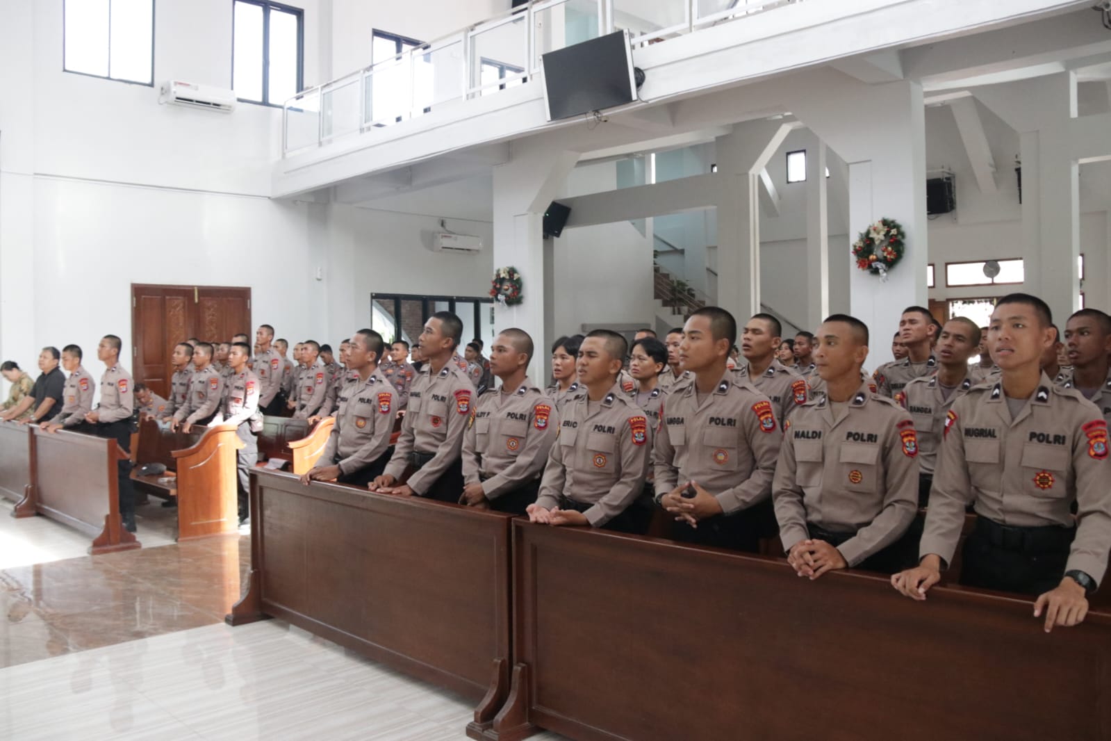 Bagi Personel Polda Kaltara yang beragam muslim melaksanakan Binrohtal di Masjid Nur Aryyaguna sedangkan untuk umat Nasrani melaksanakan Binrohtal di Gereja Oikumene Hosana Polda Kaltara. Kamis (02/01/2025).