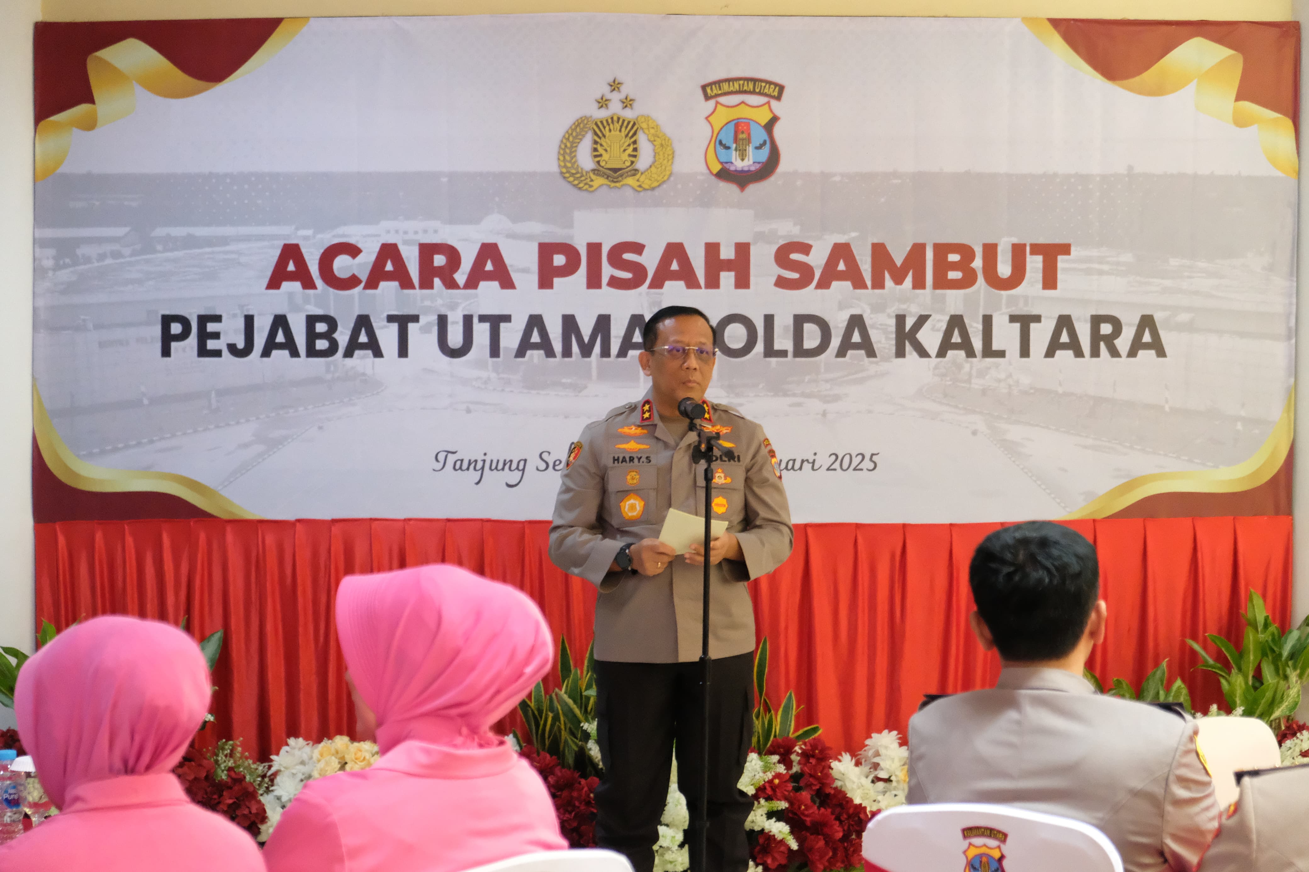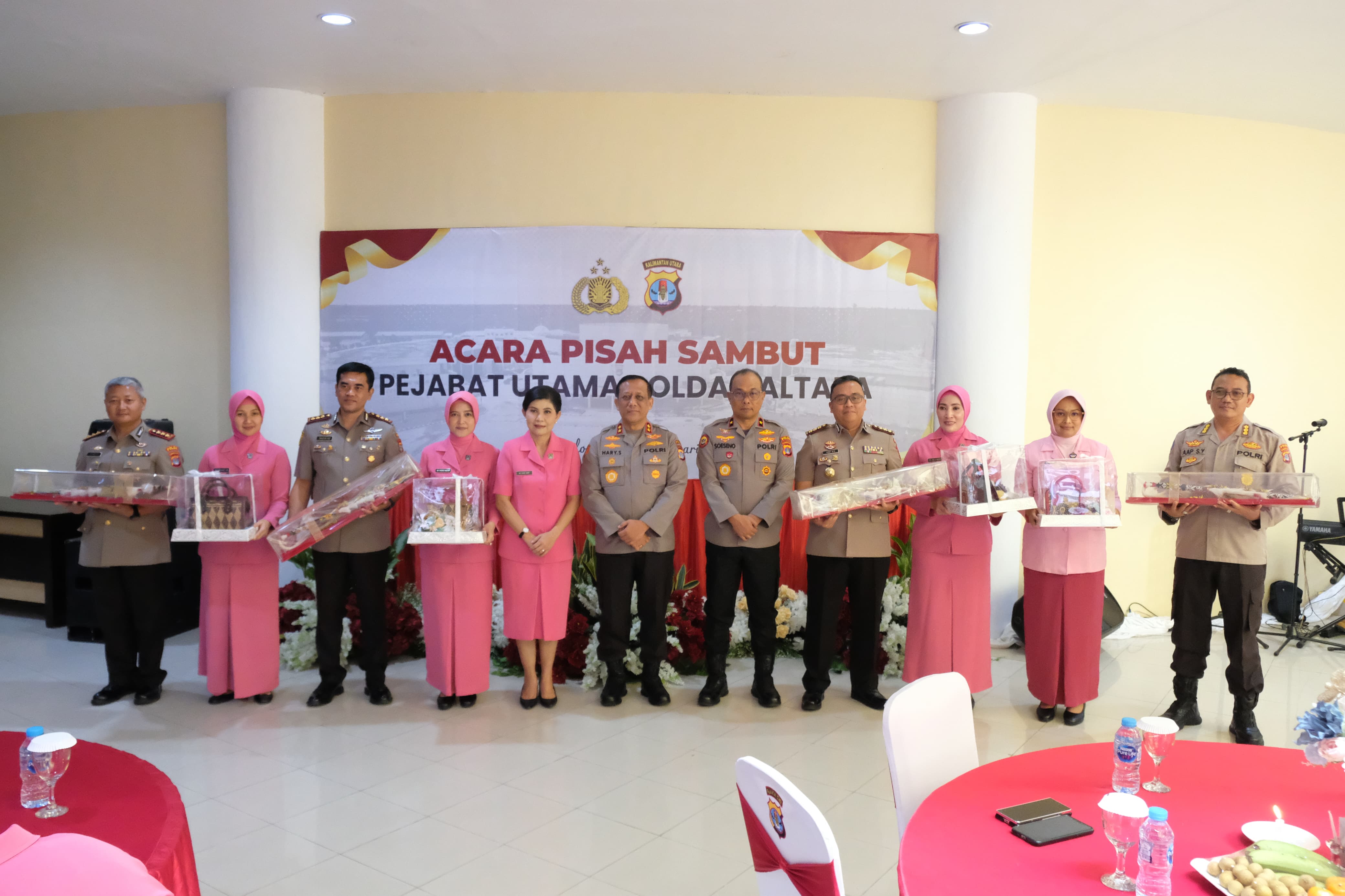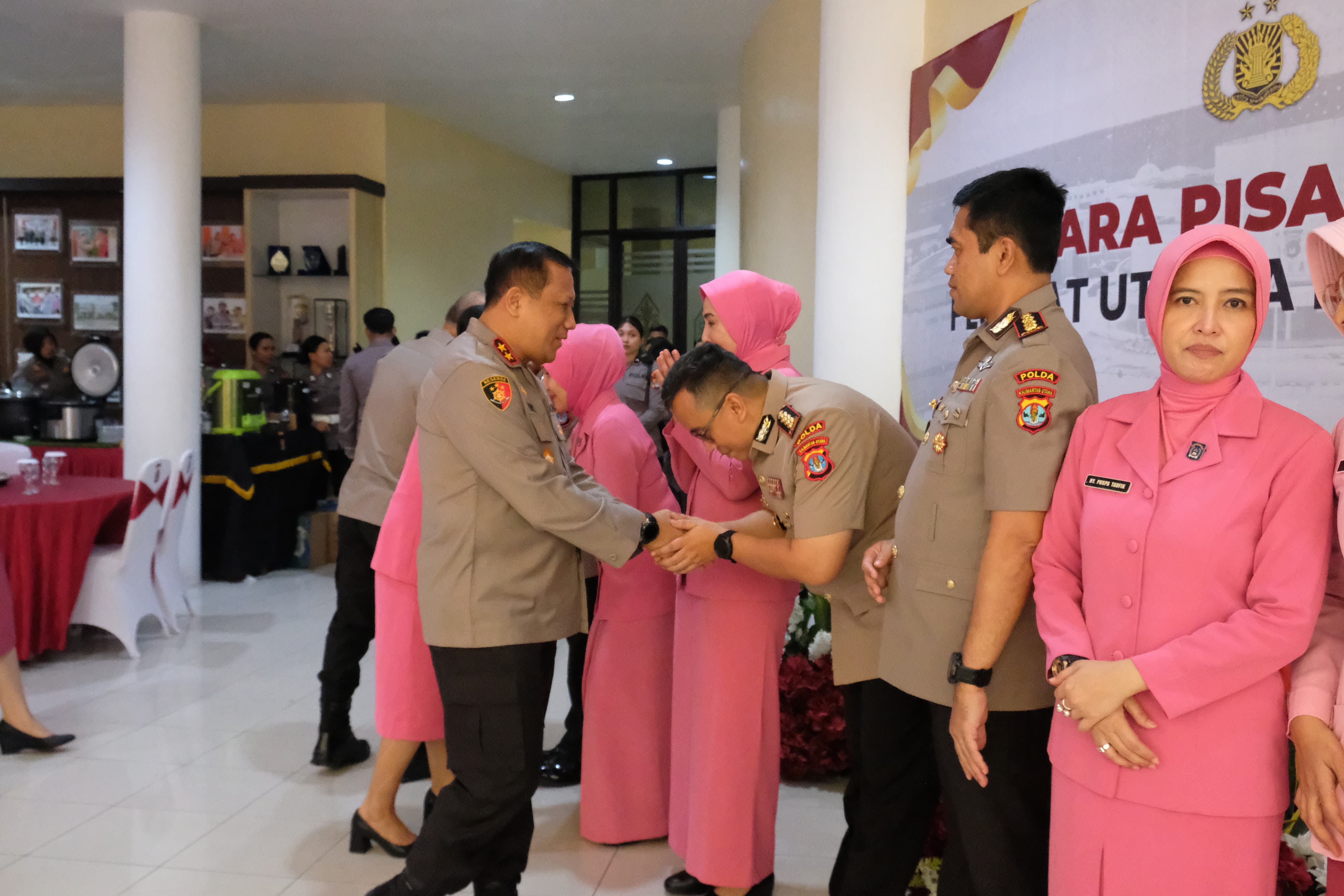 Hadir dalam acara tersebut Kapolda Kaltara Irjen Pol. Hary Sudwijanto S.I.K., M.Si didampingi Wakapolda Kaltara Brigjen Pol. Soeseno Noerhandoko S.I.K., PJU dan Pamen Polda Kaltara serta Pengurus Bhayangkari yang menyaksikan kenal pamit PJU Polda Kaltara yang mengalami rotasi jabatan yaitu Dirintelkam, Dirreskrimum, Dirpolairud, Dirbinmas dan Ka. SPN Polda Kaltara, yang masing-masing telah mendapat estafet kepemimpinan untuk melanjutkan tugas kepolisian di wilayah Kalimantan utara.