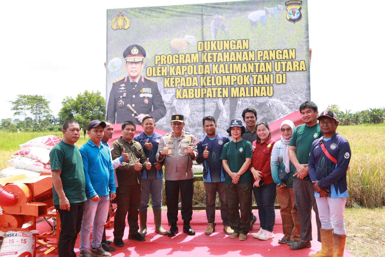 TERASNKRI.COM | MALINAU, KALTARA – Kebahagiaan terpancar dari wajah para anggota Kelompok Tani Manggris Lestari di Desa Malinau Kota setelah kunjungan Kapolda Kalimantan Utara, Irjen Pol Hary Sudwijanto, S.I.K., M.Si., pada Selasa, 7 Januari 2025. Kunjungan ini sekaligus menjadi momen berharga dengan adanya bantuan berupa mesin perontok padi, pupuk, dan racun tanaman yang diserahkan langsung kepada kelompok tani. Rabu (08/01/2025).