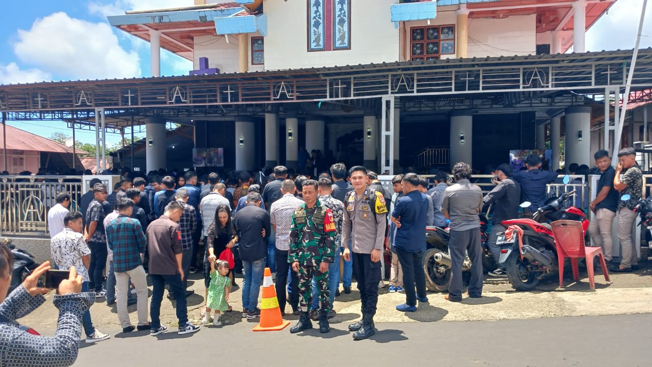 Terpantau, rangkaian ibadah perayaan Jumat Agung dan perjamuan kudus di Gereja-gereja yang ada di wilayah hukum Polres Minsel berlangsung aman lancar dengan penjagaan personel gabungan TNI/Polri, Panji Yosua serta organisasi gereja lainnya. (CorNay)
