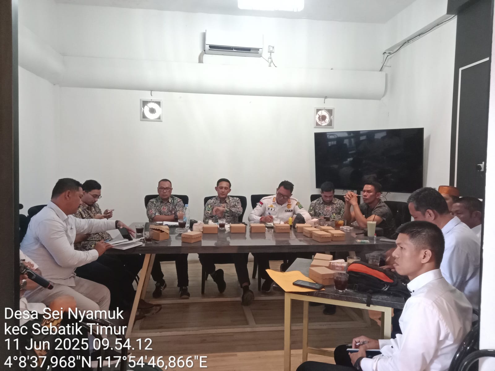 TERASNKRI.COM | NUNUKAN, KALTARA – Guna mencari solusi terkait banjir yang kerap melanda di wilayah Sebatik, Pemerintah Kecamatan Sebatik Timur menggelar pertemuan lintas sektoral yang dihadiri anggota DPRD Kabupaten Nunukan Ramsah, Tokoh Masyarakat Sebatik H. Herman Baco, Kepala BWS Kaltara, Kepala Balai Jalan Kaltara, Bidang Bina Marga dan Bidang Pengairan Dinas PUPR Kabupaten Nunukan, Kades Bukit Harapan, Kades Tanjung Aru, Kades Bukit Aru Indah, Kades Tanjung Harapan, Kades Sungai Nyamuk, Kades Sungai Pancang, Muhammad Jafar (Thubank) serta Camat Sebatik Timur H. Andi Joni selaku moderator, pertemuan bertempat di Cafe D’Putri Sungai Nyamuk, Rabu (11/6/2025)