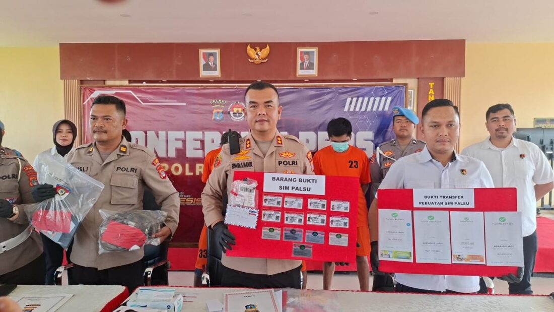 Kapolres Tarakan, AKBP Erwin S. Manik, menyampaikan keberhasilan pengungkapan tindak pidana pemalsuan surat berupa SIM di dua tempat kejadian perkara, dengan empat orang tersangka, satu wanita berinisial LN (43) dan tiga orang pria, berinisial MD (35), AP (41), dan YS (28). Dengan peran berbagi peran masing-masing, MD sebagai pembuat SIM palsu, LN bertugas mencetak, AP sebagai pemilik SIM palsu, sedangkan YS berperan sebagai calo yang menawarkan SIM ilegal kepada masyarakat.