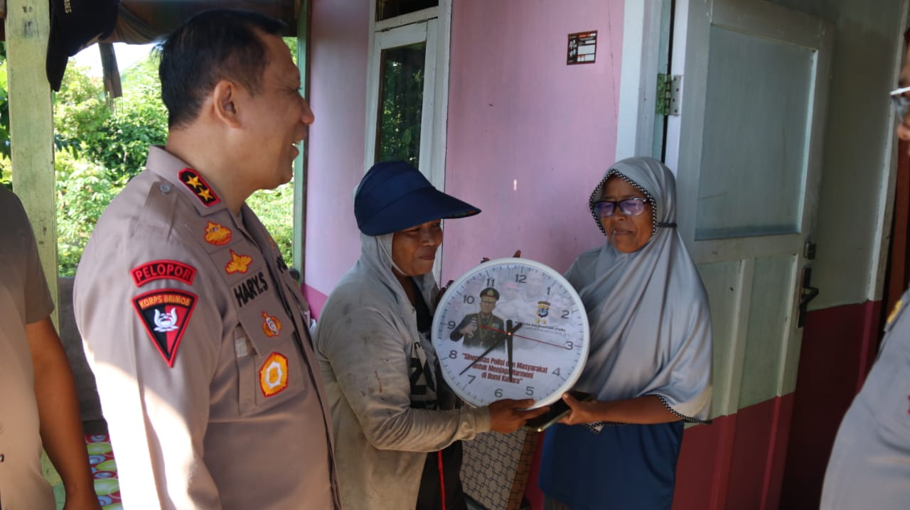 Didampingi Ketua Bhayangkari Daerah Kalimantan Utara, Kapolda turut memberikan cinderamata berupa jam dinding kepada warga sekitar sebagai simbol kedekatan dan perhatian dari institusi Polri.