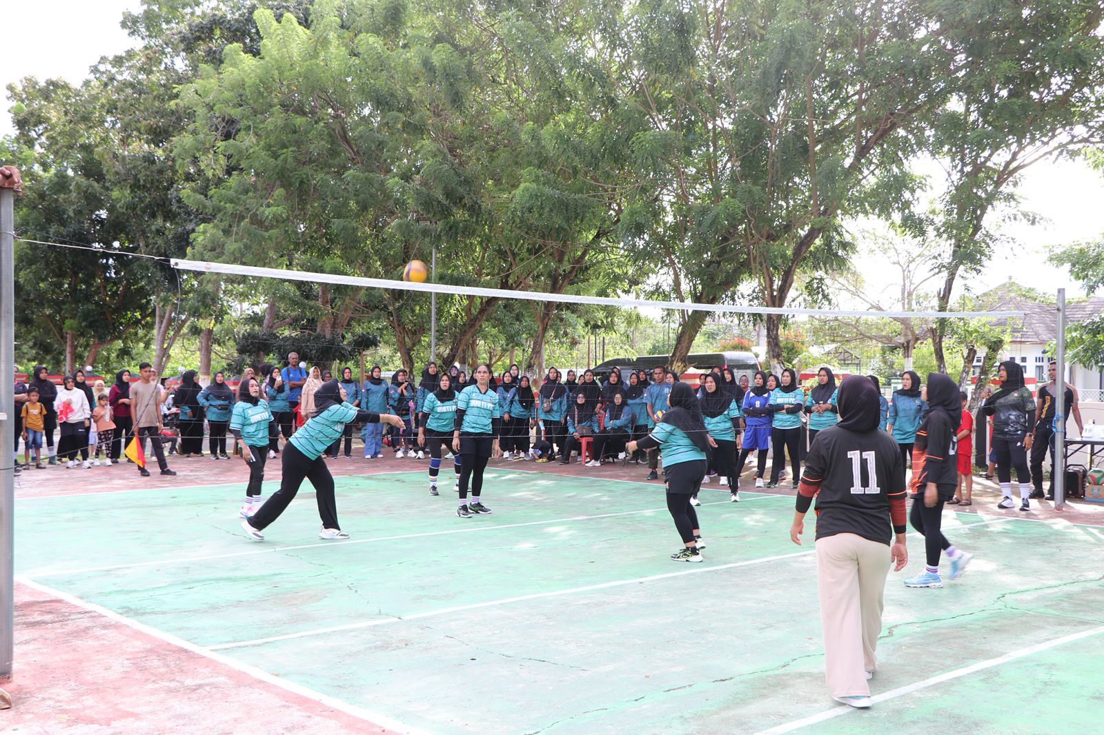 Sementara itu, pada pertandingan kedua, Tim Voli Bhayangkari menunjukkan performa gemilang dengan mengalahkan Tim Voli Putri dari Dinas Pemberdayaan Perempuan dan Perlindungan Anak (DP3A) Kabupaten Buru. Tim Bhayangkari menang telak dalam dua set, dengan skor 25-9 dan 25-10.