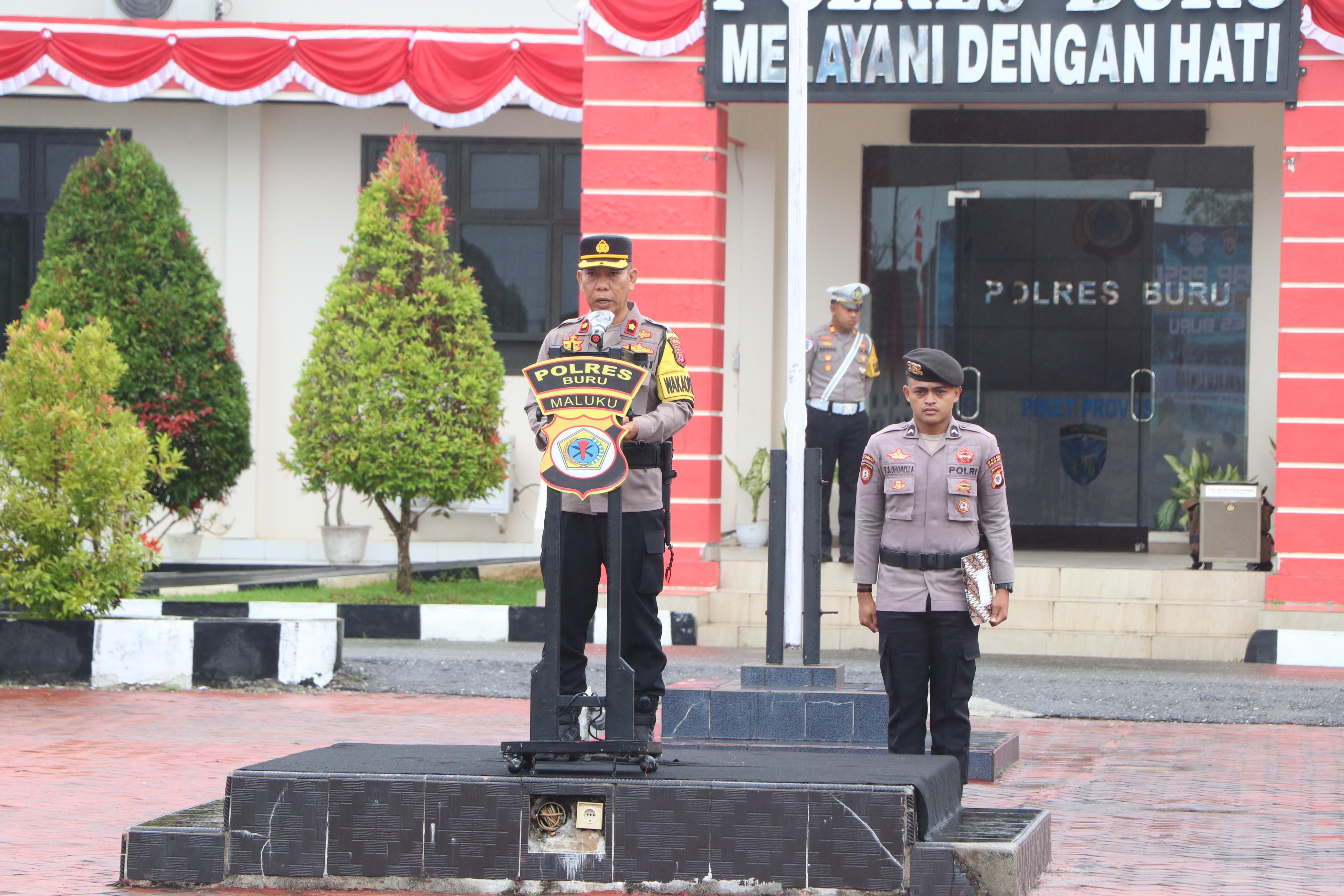 Wakapolres Buru, Kompol H. Akmil Djapa, S.Ag., memimpin apel yang dihadiri pejabat utama Polres Buru, termasuk Kabag Ren, Kabag Log, Danki Brimob Kompi III Yon Pelopor, Kasat, Kasi, Perwira Staf, perwakilan Jasa Raharja Kabupaten Buru, personel Polres Buru, Subdenpom XVI-22 Namlea, dan Dishub Kabupaten Buru.