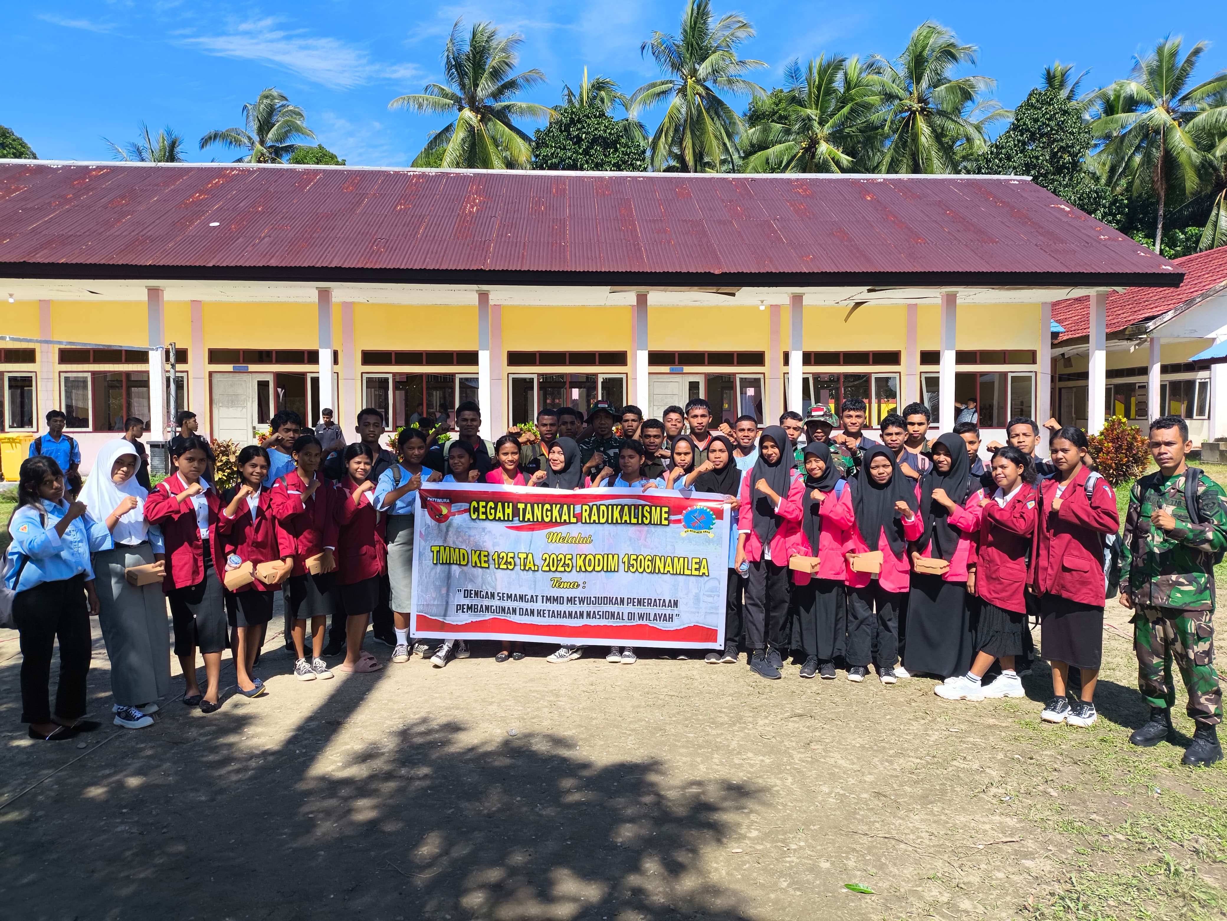 TERASNKRI.COM | BURU SELATAN, MALUKU – Guna mencegah hal-hal yang dapat memecah bangsa terutama paham Radikalisme yang dapat merusak generasi muda, maka Satuan Tugas (Satgas) TMMD Kodim 1506/Namlea melaksanakan Sosialisasi Cegah Tangkal Radikalisme di Sekolah Menengah Kejuruan Negeri (SMKN) 3 Buru Selatan, yang diikuti oleh sekitar 100 orang siswa, Rabu (30/07/2025)