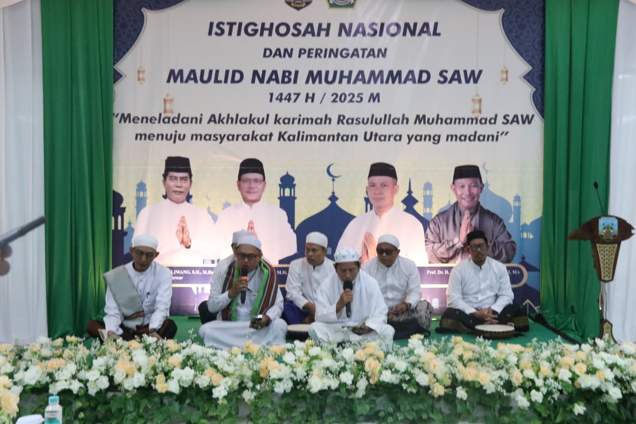 Rangkaian acara diawali dengan pembacaan ayat suci Al-Qur’an yang menghadirkan suasana khidmat dan penuh kekhusyukan. Gubernur Kalimantan Utara, Drs. H. Zainal A. Paliwang, S.H., M.Hum., dalam sambutannya menekankan pentingnya memperkuat nilai spiritual dan semangat kebersamaan dalam membangun Kalimantan Utara yang berlandaskan keimanan dan persatuan.