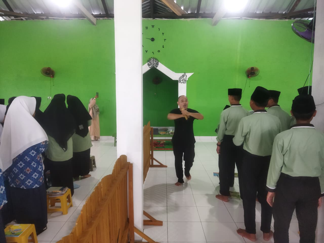 Dalam sesi pembelajaran, Ustaz Buhari memperkenalkan kota-kota bahasa Arab dan Inggris dengan metode interaktif. Suasana belajar pun berlangsung penuh keceriaan. Para santri tampak bahagia karena materi disampaikan dengan cara yang menyenangkan sekaligus mudah dipahami.