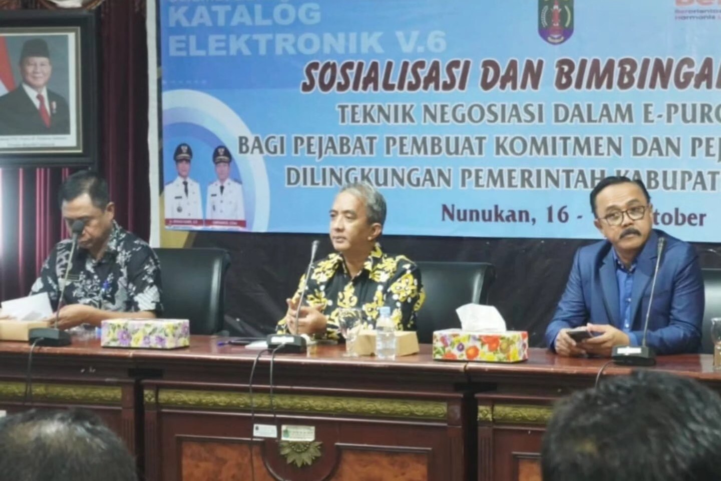 TERASNKRI.COM | NUNUKAN, KALTARA – Mewakili Bupati Nunukan, Asisten Pemerintahan dan Kesra H. Abdul Munir membuka kegiatan Sosialisasi dan Teknik Negosiasi Dalam E-Purchasing Bagi Pejabat Pembuat Komitmen dan Pejabat Pengadaan Dilingkungan Pemerintah Kabupaten Nunukan. Kamis (16/10/25).