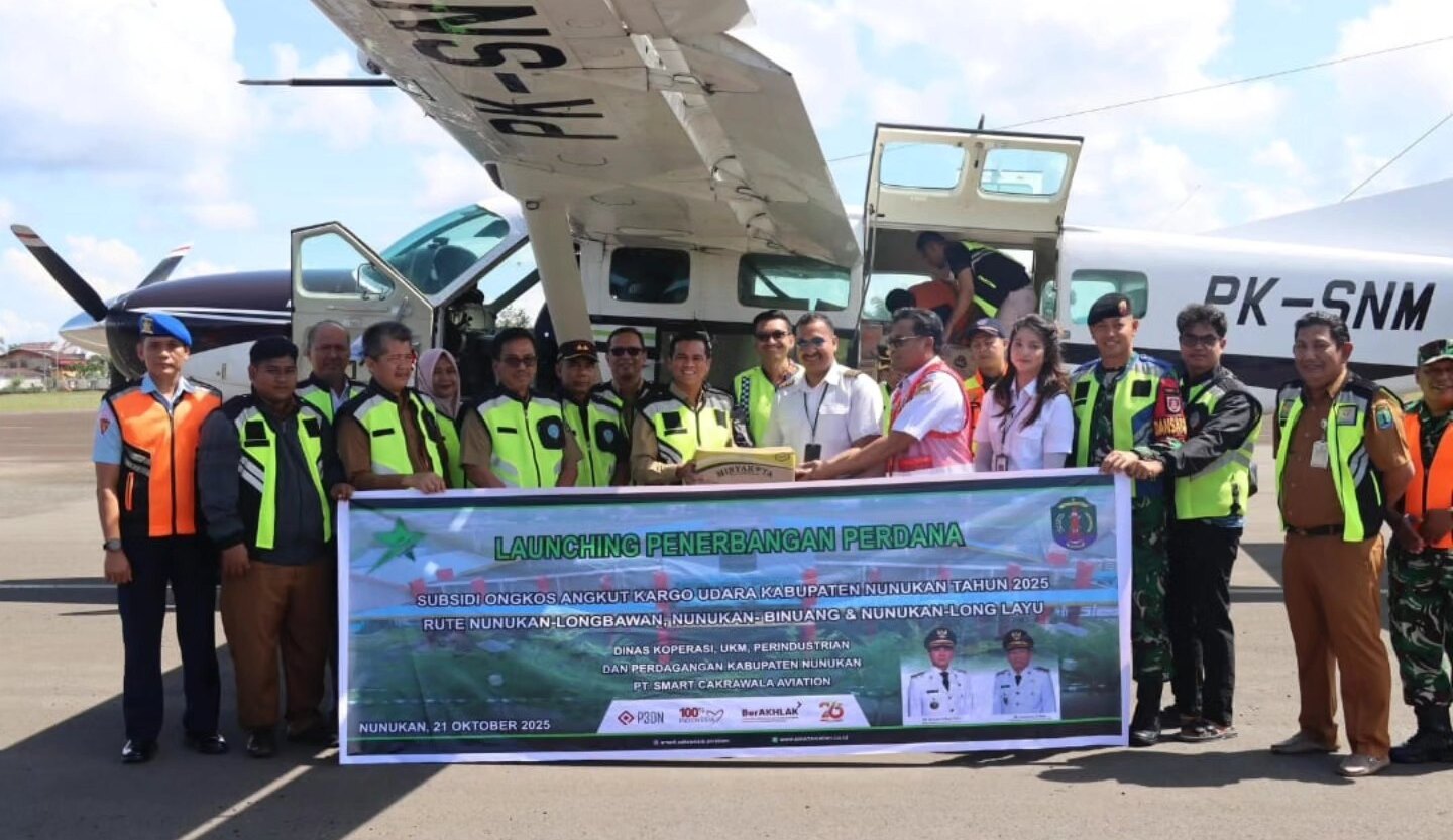 TERASNKRI.COM | NUNUKAN, KALTARA – Bupati Nunukan H. Irwan Sabri Melakukan launching Penerbangan Perdana Subsidi Ongkos Angkut (SOA) Penumpang Udara dan SOA Barang Tahun Anggaran 2025 di Bandara Nunukan, Selasa (21/10/2025). Penerbangan SOA Penumpang kali ini akan melayani rute penerbangan Nunukan – Long Layu (PP), dan SOA Barang akan melayani rute Nunukan – Long Bawan.