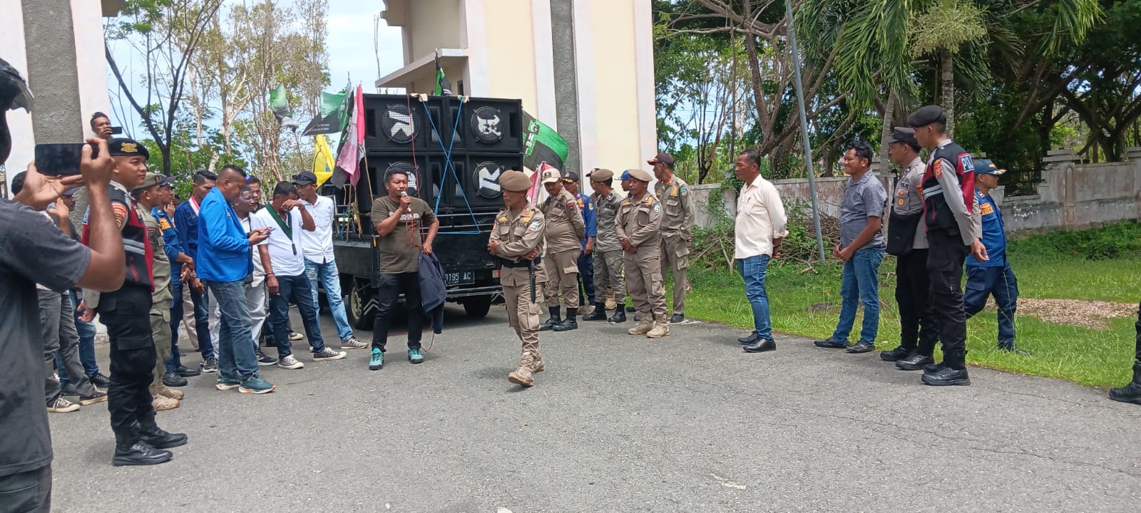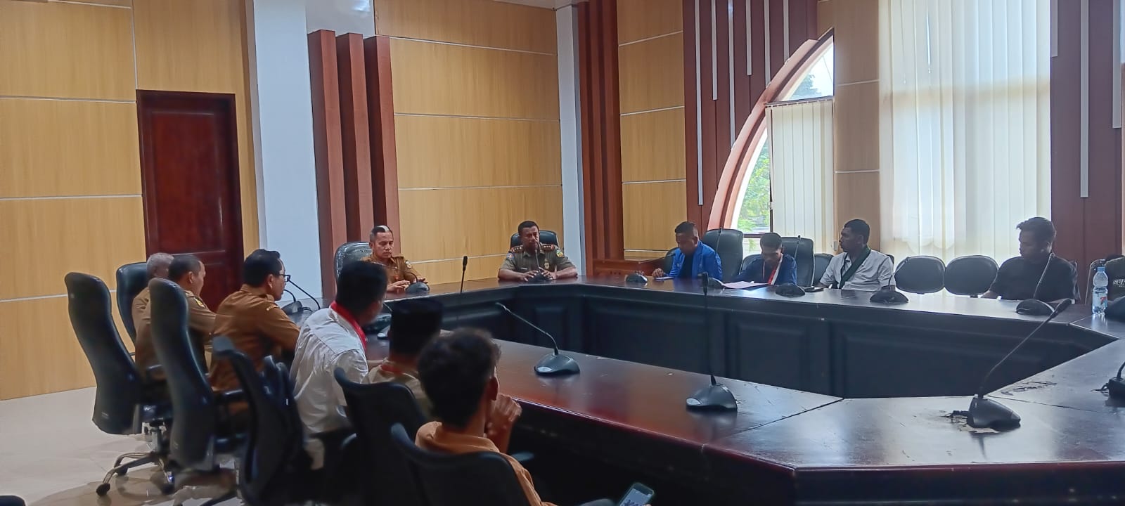 Di Kantor Bupati Buru, massa aksi diterima langsung Sekretaris Daerah Kabupaten Buru, Azis Tomia, yang mengundang perwakilan mahasiswa untuk berdiskusi di ruang utama kantor bupati.