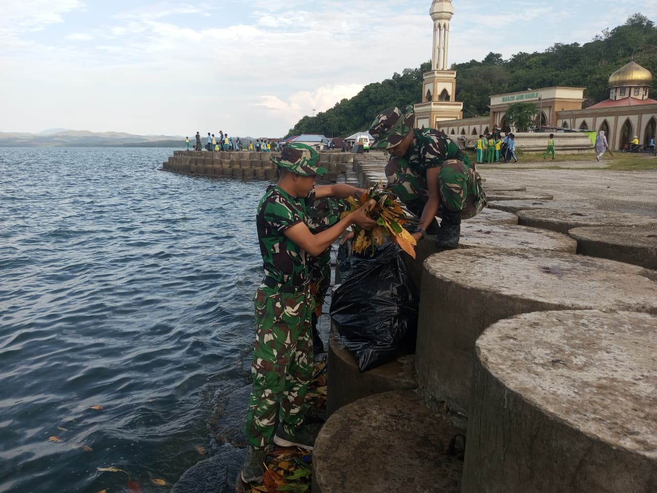 Aksi bersih-bersih ini melibatkan kolaborasi solid antara: 50 Personel TNI; 8 Perwakilan Pemda serta 70 Siswa-Siswi sekolah setempat