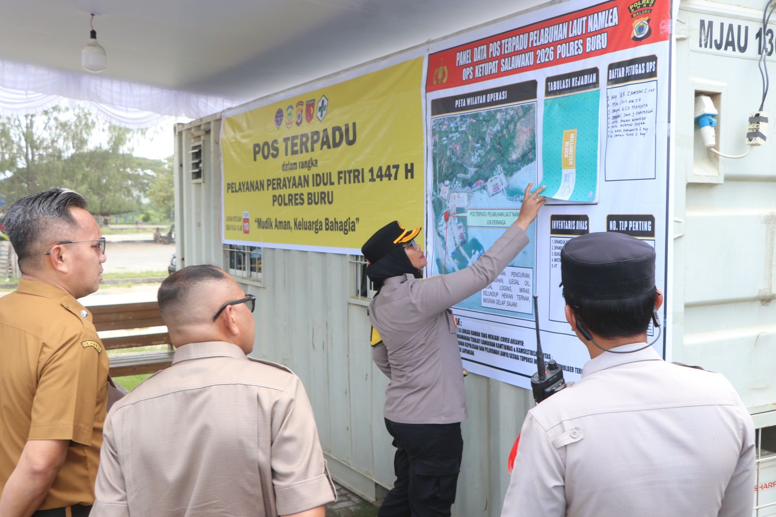 Rombongan meninjau sejumlah titik strategis. Dimulai pukul 11.20 WIT di Pos Yan Wisata Desa Jikumeras untuk memastikan fasilitas pelayanan wisata, dilanjutkan ke Pos Terpadu Pelabuhan Laut Namlea guna mengecek kesiapan pengamanan arus lalu lintas dan penumpang.