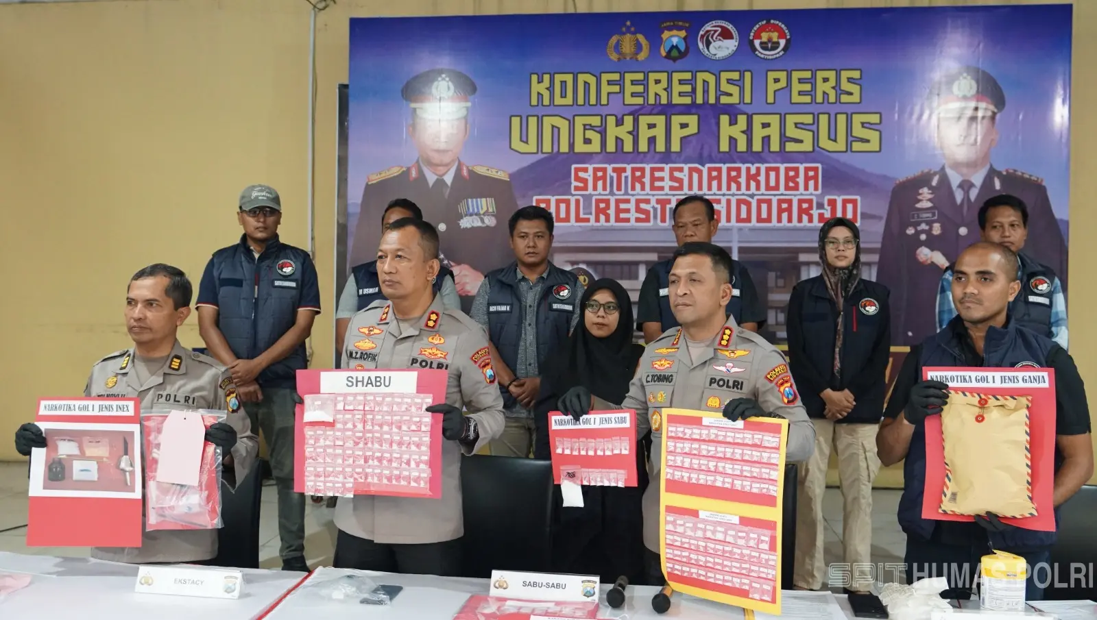 “Dari hasil pengungkapan ini, kami menyita barang bukti berupa 235,79 gram sabu, 52 butir ekstasi, dan 408,66 gram ganja. Total nilai ekonomis barang bukti mencapai Rp387 juta,” ujar Kombes Pol. Christian Tobing dalam konferensi pers, Kamis (9/4/2026).