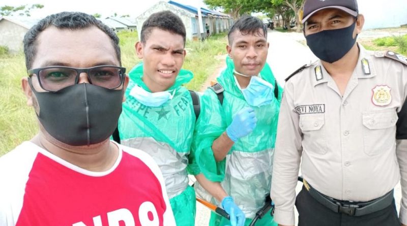 www.teras-nkri.com | Maluku, Namlea- Pimpinan jemaat Gereja Sungai Yordan Pendeta Phill Patiasina S.Th. bersama tiemnya melaksanakan kegiatan penyemprotan cairan disinfektan