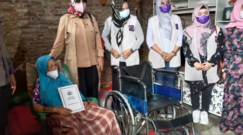 TERASNKRI.COM | Batu Bara, Sumut – Pengurus Kartini Komunitas Sedekah Jumat (KSJ) memberikan bantuan kursi roda kepada Ibu Dewi Hartati,
