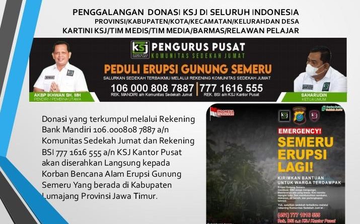 KSJ Jawa Timur Fokus Salurkan Bantuan Pangan Pasca Bencana Erupsi Gunung Semeru