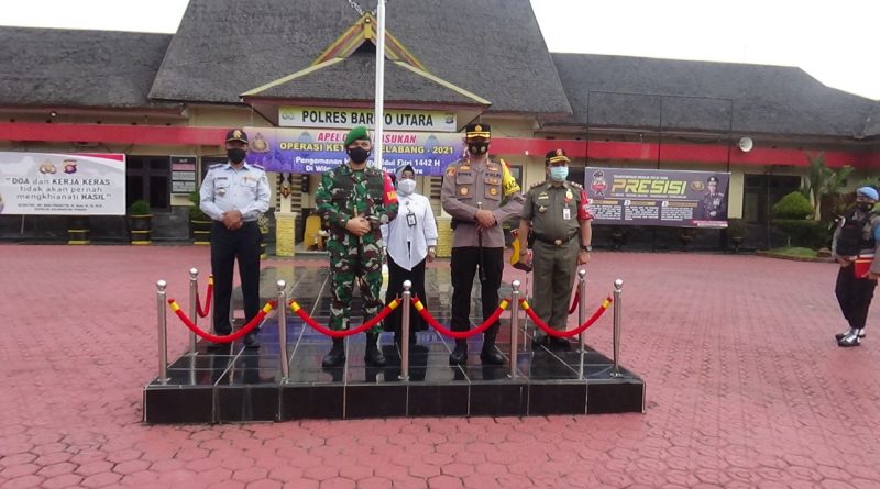 TERASNKRI.COM | BARUT, MUARA TEWEH – Polres Barito Utara jajaran Polda Kalteng laksanakan apel gelar pasukan Operasi Ketupat Telabang 2021