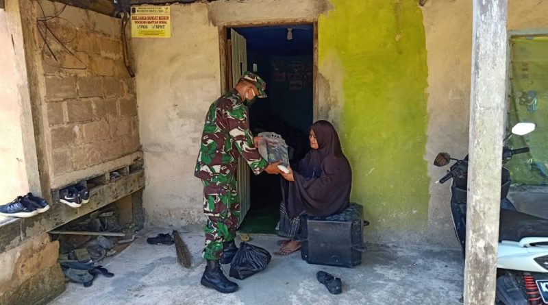 www.teras-nkri.com | NUNUKAN – Sebatik, Babinsa Pancang Sertu Imam Subandi tengah melakukan aksi TNI Peduli dengan mengantarkan bantuan paket pangan