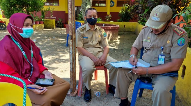 TERASNKRI.COM | NUNUKAN, KALTARA – Camat Sebatik Timur Wahyuddin, S.Sos saat memantau kegiatan vaksinasi bagi anak usia 6-11 tahun gelaran