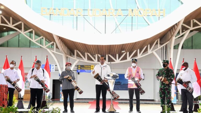 TERASNKRI.COM | Merauke, Papua – Presiden Joko Widodo meresmikan terminal baru Bandara Mopah di Kabupaten Merauke, Provinsi Papua, pada Minggu,