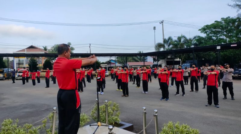 Selesai Apel Pagi Polres Tanah Laut dan Polda Kalsel Lanjutkan dengan Olahraga