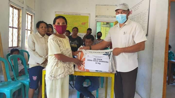 Dampak Covid-19, Pemdes Golo Mangung Bagikan Beras Kepada Masyarakat