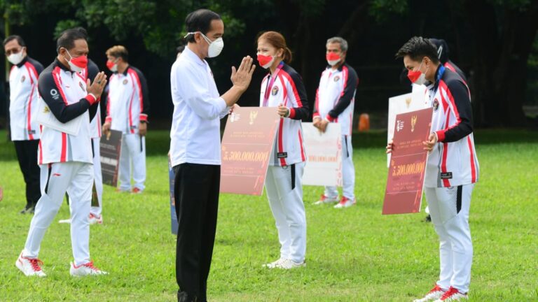TERASNKRI.COM | JAKARTA – Presiden Joko Widodo menerima kontingen Indonesia yang berlaga di Olimpiade Tokyo 2020, sekaligus menyerahkan bonus apresiasi