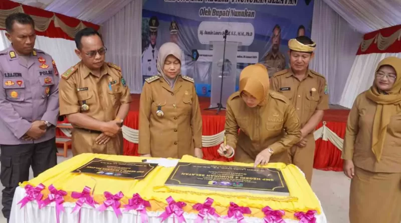 TERASNKRI.COM | NUNUKAN, KALTARA – Bupati Nunukan Hj. Asmin Laura Hafid meresmikan gedung Baru Sekolah SMPN 4 Nunukan Selatan. Gedung