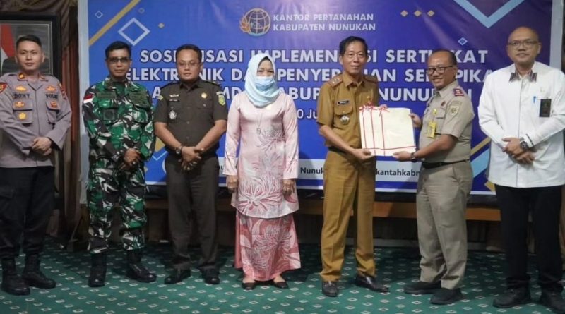 TERASNKRI.COM | NUNUKAN, KALTARA – Mewakili Bupati Nunukan, Sekretaris Daerah Serfianus menghadiri acara Sosialisasi Implementasi Sertipikat Elektronik dan Penyerahan Sertipikat