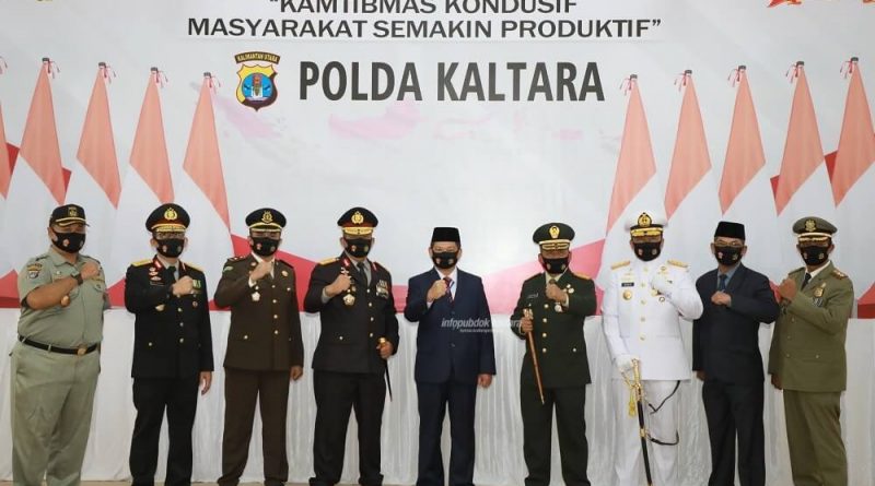 TERASNKRI.COM | Tanjung Selor – Gubernur Kalimantan Utara (Kaltara) Dr H Irianto Lambrie menghadiri upaca peringatan HUT ke-74 Bhayangkara yang