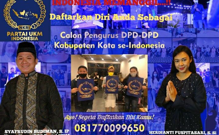 1 Juni 2021 Partai UKM Indonesia Buka Pendaftaran Calon Pengurus Kabupaten/Kota Se-Indonesia
