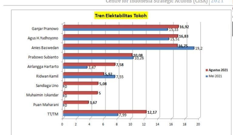 Survei CISA : Ganjar Salip Anies, AHY Semakin Moncer Pada Pilpres 2024