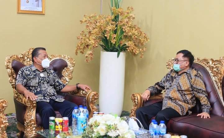 TERASNKRI.COM | SULUT, BOLMUT – Bupati Bolaang Mongondow Utara Drs. Hi. Depri Pontoh menerima kunjungan kerja Kepala Kantor Wilayah Kementerian