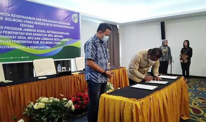 Penandatanganan Nota Kesepahaman dan Perjanjian Kerjasama Antara Pemkab Bolmut dengan BPJS Ketenagakerjaan