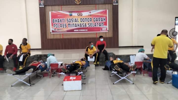 Terasnkri.com | Minsel, Sulut -Polres Minahasa Selatan melaksanakan kegiatan bakti sosial donor darah, Jumat (19/11/2021), bekerjasama dengan pihak Palang Merah