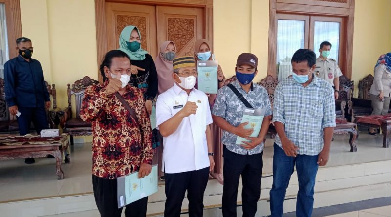 Terasnkri.com | Mamuju, Sulbar – Gubernur Sulawesi Barat, Ali Baal Masdar didampingi Kakanwil BPN Sulbar, Herjon Panggabean menyerahkan secara simbolis